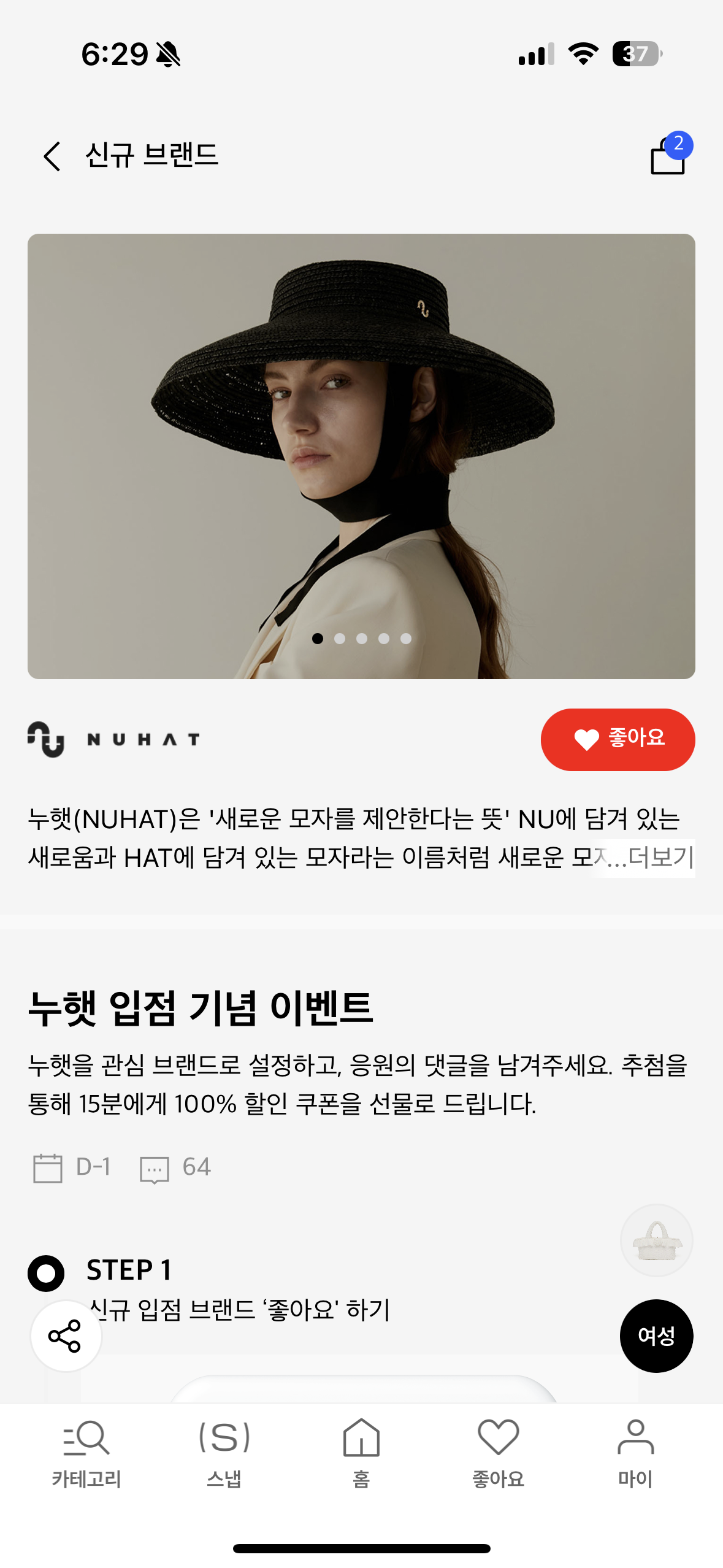 누햇을 관심 브랜드로 설정하고, 응원의 댓글을 남겨주세요. 추첨을 통해 15분에게 100% 할인 쿠폰을 선물로 드립니다.