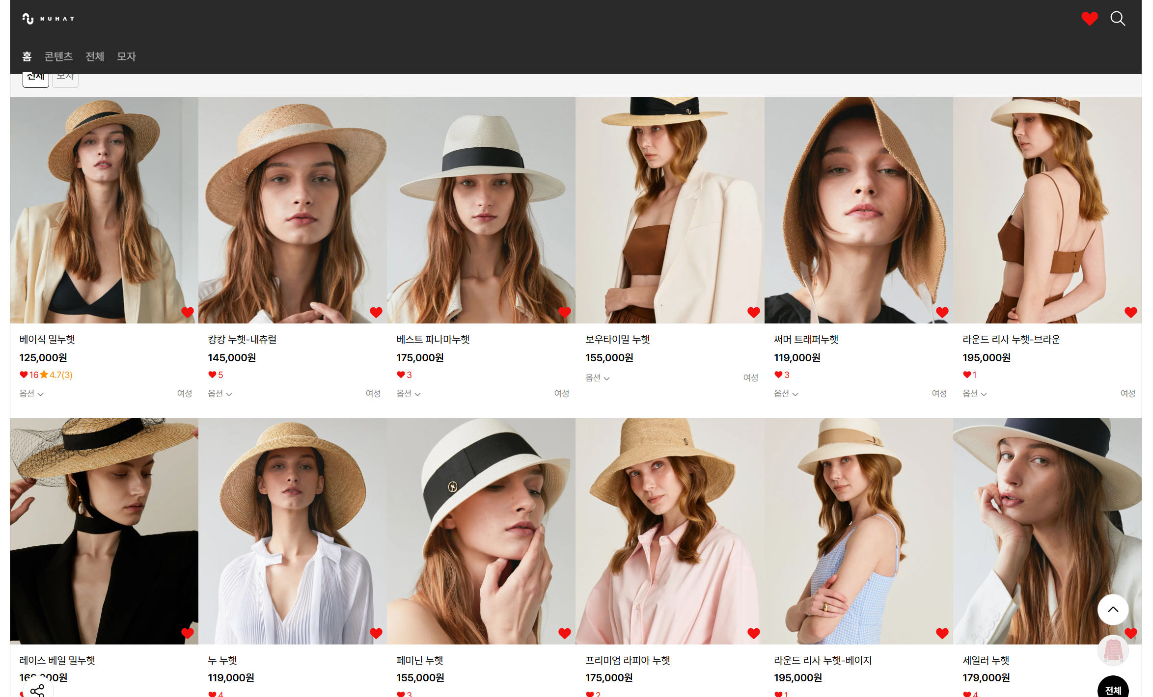 누햇(NUHAT)은 '새로운 모자를 제안한다는 뜻' NU에 담겨 있는 새로움과 HAT에 담겨 있는 모자라는 이름처럼 새로운 모자를 디자인하고 제안하는 브랜드입니다.