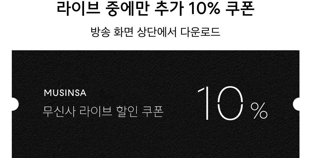 - 10% 할인 쿠폰은 라이브 방송 시작 후 발급받을 수 있습니다.