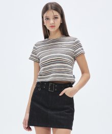 써머 니트 스트라이프 크롭 탑 [BLACK]