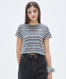 써머 니트 스트라이프 크롭 탑 [BLUE]