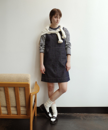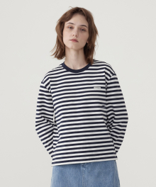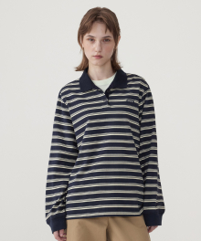 우먼 스트라이프 럭비 롱 티셔츠 Navy