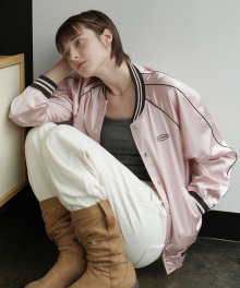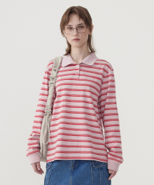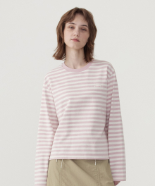 우먼 스트라이프 럭비 롱 티셔츠 Light Pink