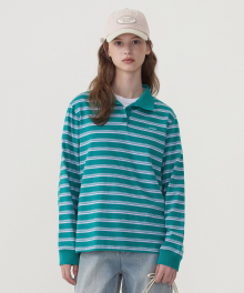 우먼 스트라이프 럭비 롱 티셔츠 Green