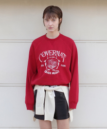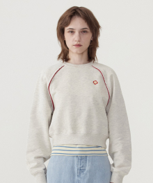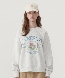 우먼 크롭핏 클로버하트 맨투맨 Oatmeal
