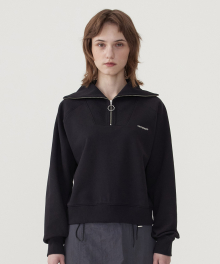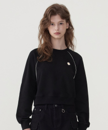 우먼 크롭핏 클로버하트 맨투맨 Black