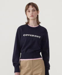 우먼 쿠퍼로고 라운드넥 니트 Navy
