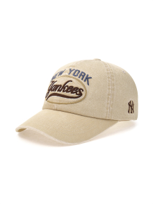 [카리나 착용] 바시티 빈티지 컬시브 스티치 언스트럭쳐 볼캡 NY (L.Beige)