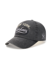 [카리나 착용] 바시티 빈티지 컬시브 스티치 언스트럭쳐 볼캡 NY (Charcoal Grey)